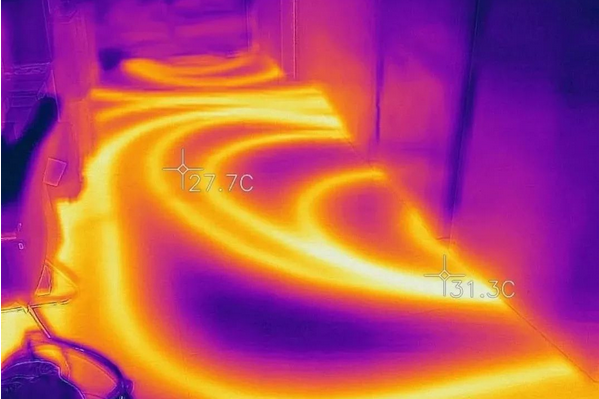 而通過手持式紅外熱像儀,暖通工程師使用手持式熱像儀就可以檢查有漏水嫌疑的地暖盤管,通過觀察管路各處溫度的明顯對比,輕易的辨別出具體的漏水點(diǎn),避免開鑿地面不準(zhǔn)確造成的失誤。