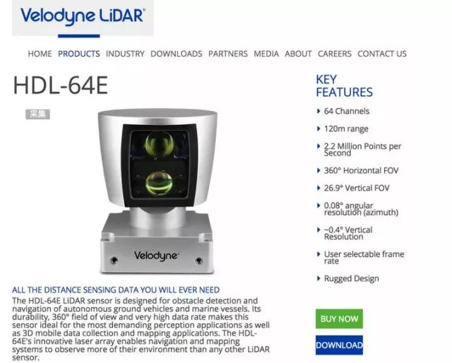 Uber 改裝的沃爾沃XC90頂部搭載了1臺(tái)Velodyne的HDL-64激光雷達(dá),通過(guò)三維激光掃描技術(shù),能對(duì)周?chē)o止和移動(dòng)物體生成3D圖像,并且激光探測(cè)不受光照條件影響,探測(cè)精度可達(dá)厘米級(jí)。據(jù)Velodyne 官網(wǎng)顯示,HDL-64探測(cè)距離為120米,理論上可以避免事故的發(fā)生。
