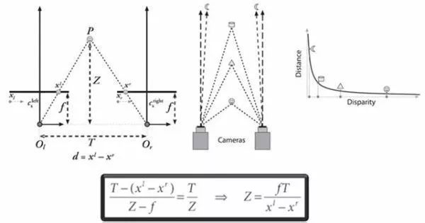 雙目與單目的第二點(diǎn)區(qū)別是雙目可以在不識(shí)別目標(biāo)的情況獲得深度(距離)數(shù)據(jù)。雙目立體視覺(jué)系統(tǒng)就是通過(guò)對(duì)兩幅圖像視差的計(jì)算,直接對(duì)前方景物進(jìn)行距離測(cè)量(視場(chǎng)范圍內(nèi)),而無(wú)需判斷前方出現(xiàn)的是什么類(lèi)型的障礙物。