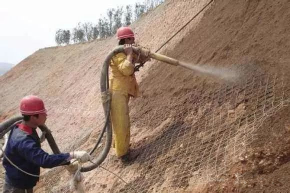 生態(tài)噴播技術(shù)就是利用活性植物材料,結(jié)合高強(qiáng)度土工格柵等工程材料,利用植生基材專用噴射裝置將攪拌均勻的植生基材按設(shè)計(jì)厚度噴射到巖石坡面上,在巖石坡面構(gòu)建一個(gè)具有自生長的功能系統(tǒng),通過植物的生長活動(dòng)和其它輔助工程措施進(jìn)行邊坡加固的一門高新技術(shù)。先用錨桿加固、土工格柵,增加土體內(nèi)聚力、提高土體抗剪強(qiáng)度以及保證土層厚度,利于邊坡基材穩(wěn)定;然后在上面噴撒上專門的植生基材,起到提高植物成活率為坡面復(fù)綠達(dá)到效果,從而讓峭壁穿上綠衣。