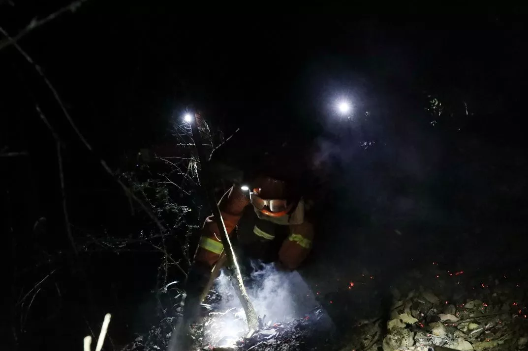 28日5時(shí)30分左右,身處冕寧火場(chǎng)一線的四川森林消防總隊(duì)副總隊(duì)長張宏偉命令涼山森林消防支隊(duì)第一梯隊(duì)97名消防隊(duì)員繼續(xù)在東南線撲打,涼山森林消防支隊(duì)第二梯隊(duì)66名消防員和成都森林大隊(duì)160名消防員在火場(chǎng)北線西側(cè)突破火線,分別向兩側(cè)展開撲打。與此同時(shí),當(dāng)?shù)負(fù)浠痍?duì)、民兵群眾約430人配合三支隊(duì)伍跟進(jìn)清理火線。