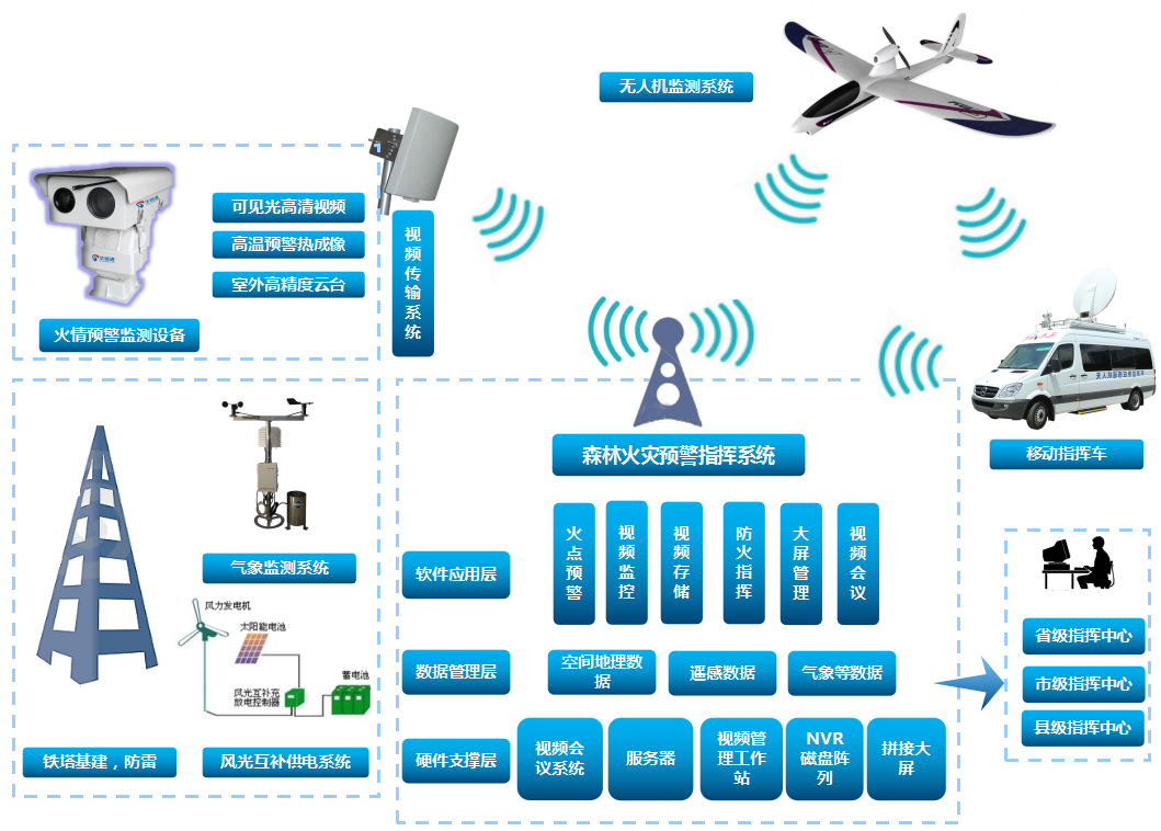 視頻監(jiān)控技術(shù)采用攝像機(jī)作為視頻圖像傳感器,用于采集監(jiān)控現(xiàn)場的信息;無線視頻監(jiān)控終端作為視頻采集、視頻疊加、語音及對講、報(bào)警、GPS定位、抓拍、云臺(tái)控制、硬盤存儲(chǔ)、SD卡存儲(chǔ)及遠(yuǎn)程視頻回放等。視頻監(jiān)控為森林防火提供了數(shù)字化和網(wǎng)絡(luò)化的管理,系統(tǒng)具有林火自動(dòng)識(shí)別功能,實(shí)現(xiàn)火情自動(dòng)報(bào)警,林火火點(diǎn)電子地圖精確定位,通過專線傳回縣森林消防指揮中心,由縣森防指統(tǒng)一指揮,實(shí)時(shí)監(jiān)控,實(shí)時(shí)預(yù)警,實(shí)時(shí)調(diào)度,做到森林火情早發(fā)現(xiàn)、早處置、早撲救,以確保全縣森林資源安全。