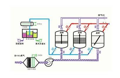 通過有機廢氣與液體吸收劑接觸,使其中的有機溶劑被吸收劑所吸收,再經(jīng)解吸,將有機溶劑除去或回收,并使吸收劑獲得再生重復(fù)利用。