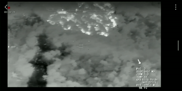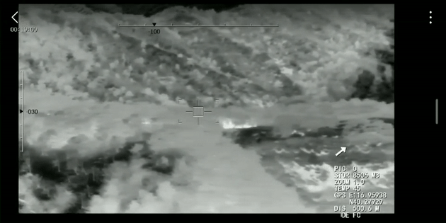 該無人機紅外載荷內(nèi)置的高德紅外熱成像機芯,拍攝下了發(fā)現(xiàn)余火的畫面。