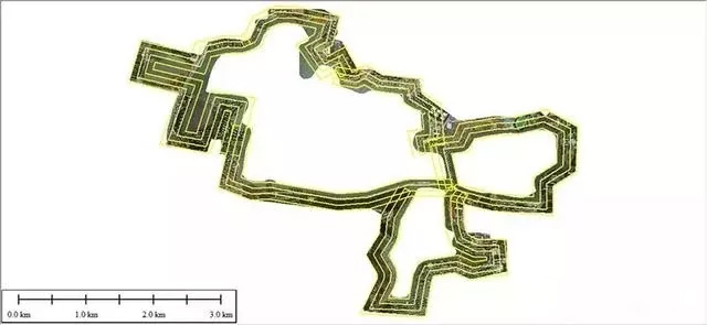 對于河道等相對較為狹窄且細(xì)長的巡查區(qū)域,在進(jìn)行航線規(guī)劃時可使用航帶飛行模式的規(guī)劃方式,在航點(diǎn)設(shè)置上航點(diǎn)應(yīng)盡量設(shè)置在河道中心上方,以便進(jìn)行通道外擴(kuò)的統(tǒng)一設(shè)置。外擴(kuò)距離的設(shè)置建議延展至河岸5~10米,以方便后續(xù)重建及地圖定位。