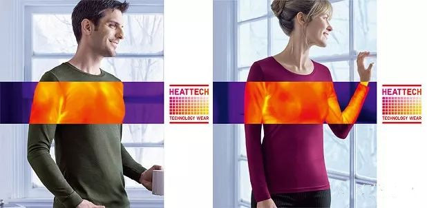 除了小黑傘,其實(shí)還有不少產(chǎn)品是通過熱像儀,用來測試和宣傳其產(chǎn)品的效果,把空洞抽象的文字轉(zhuǎn)變成直觀的展示效果。比如,在冬天很多服裝品牌都用紅外熱圖展示其服裝的防寒保暖效果。