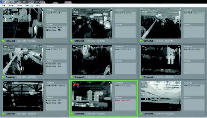 熱像儀生成熱圖像,用于進(jìn)行分析。特定的感興趣區(qū)域可在各個(gè)熱像儀視場(chǎng)中予以定義,因此預(yù)警系統(tǒng)能夠響應(yīng)突發(fā)的溫度異常,同時(shí)忽略在正常操作狀況下預(yù)計(jì)超出范圍的特征。