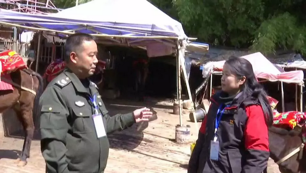 一路沿著游道到達馱馬售票處,賓川縣綠化護林防火雞足山中隊中隊長李建斌像往常一樣忙著跟工作人員叮囑交代相關(guān)工作。